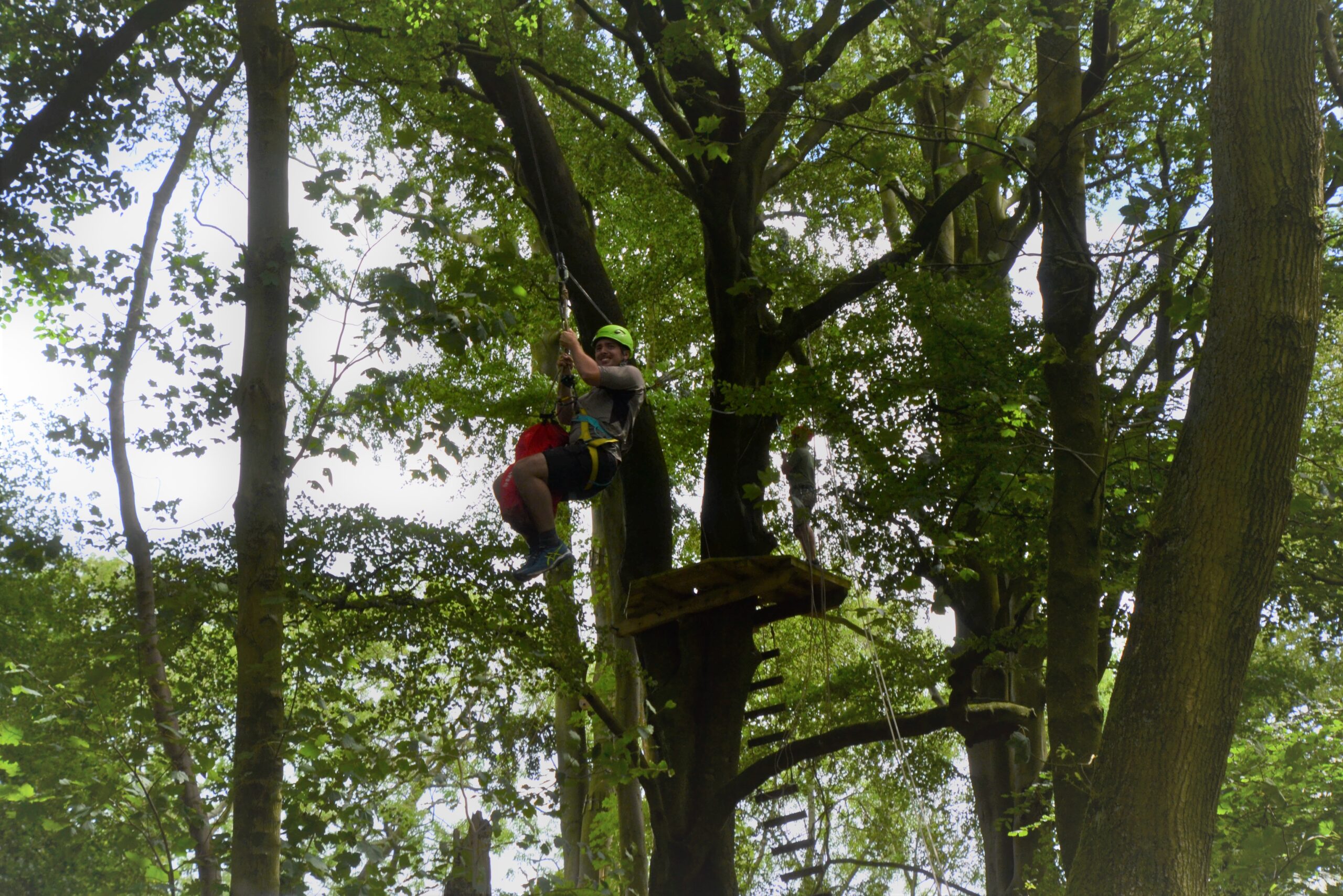 Outdoor Elements has two zip lines within the fantastic woodland setting. The Mega Zip Line is the biggest, longest, highest and fastest one we have. This is an individual challenge, whilst the team on the forest floor below shouts and cheers encouragement.