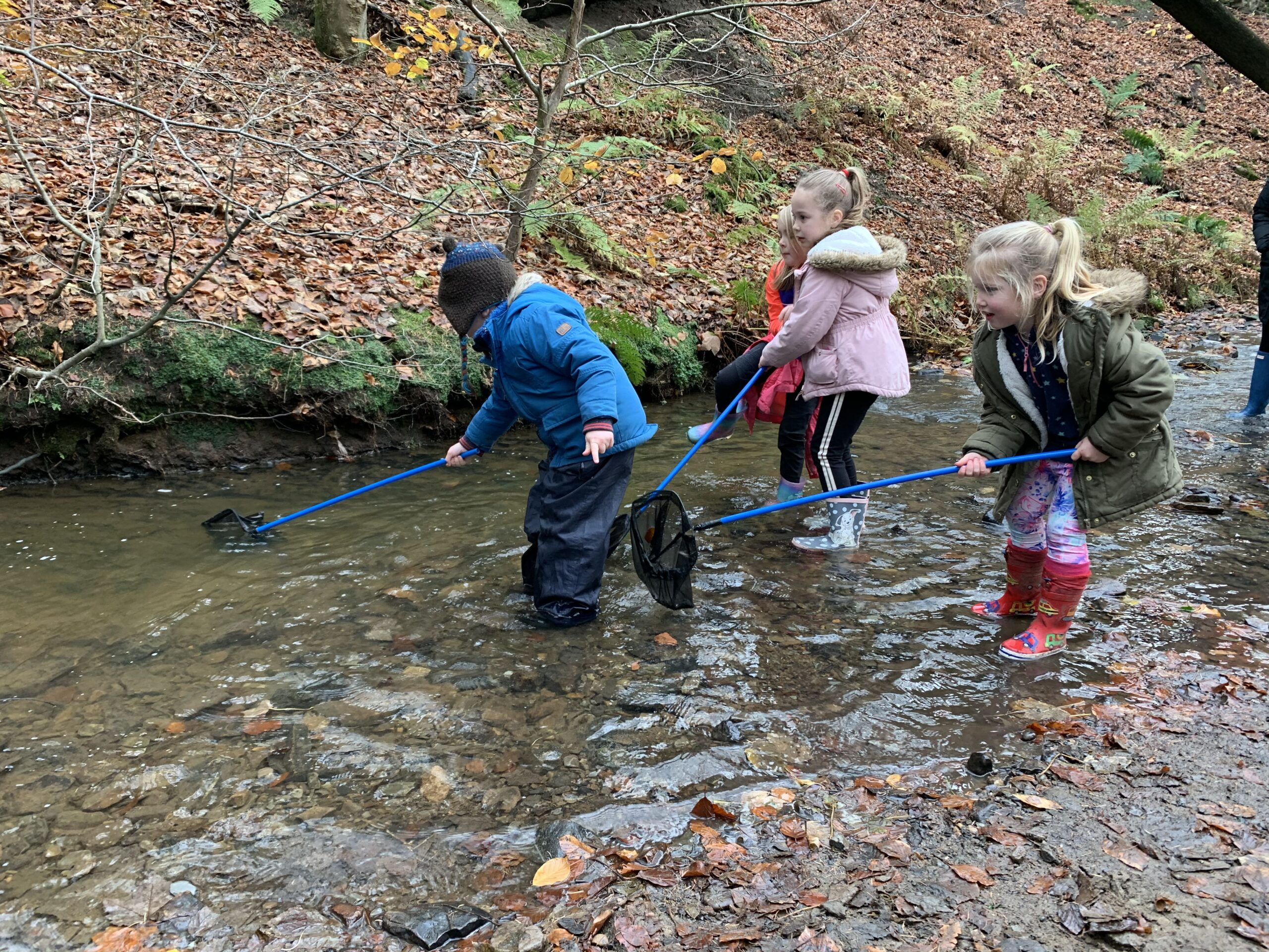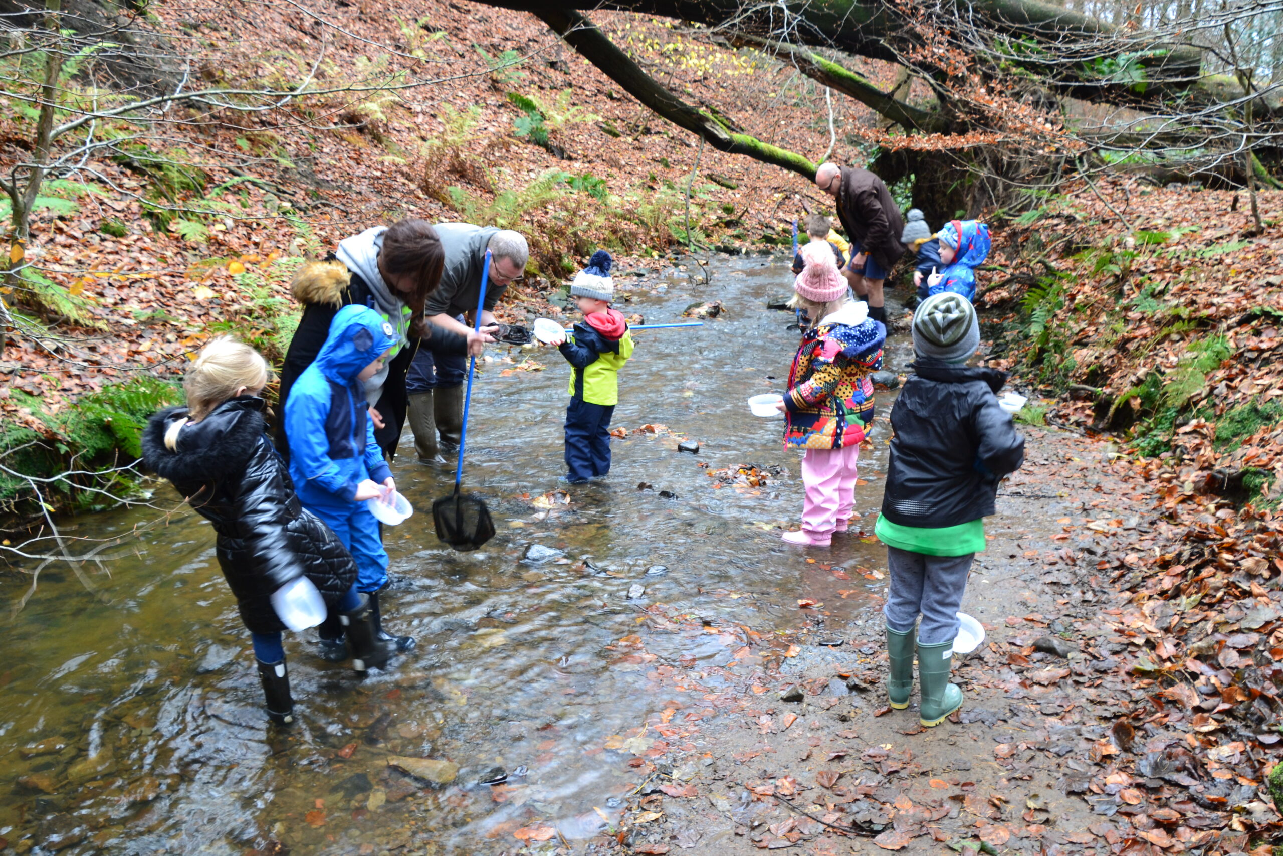 - Welly Walk Adventure – The group will be guided on an exciting welly walk along the length of our stream. On the way, they will need to splash through shallow pools, scramble over rocks and climb over and under fallen tree branches. Obstacles such as the Gruffalo’s Cave, the Log of Doom and the Slippery Slabs make this a true adventure.