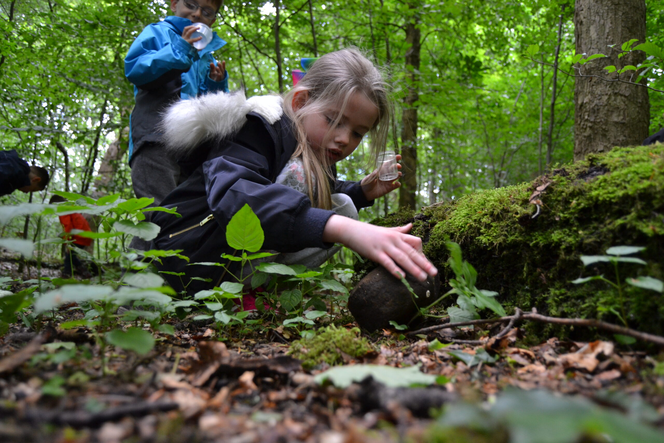 Lifting logs and stones, children search for crawling and slithering woodland creatures. Guided by instructors, they safely capture bugs and place them in a temporary “bug hotel” for observation. Using examples like the earthworm, we discuss their importance in the ecosystem and how we can care for their environment. This session can also include Stream Dipping. Using nets, children uncover the hidden world of swimming bugs. Their discoveries are placed in our “bug swimming pool” for close observation. Wellington boots are essential!